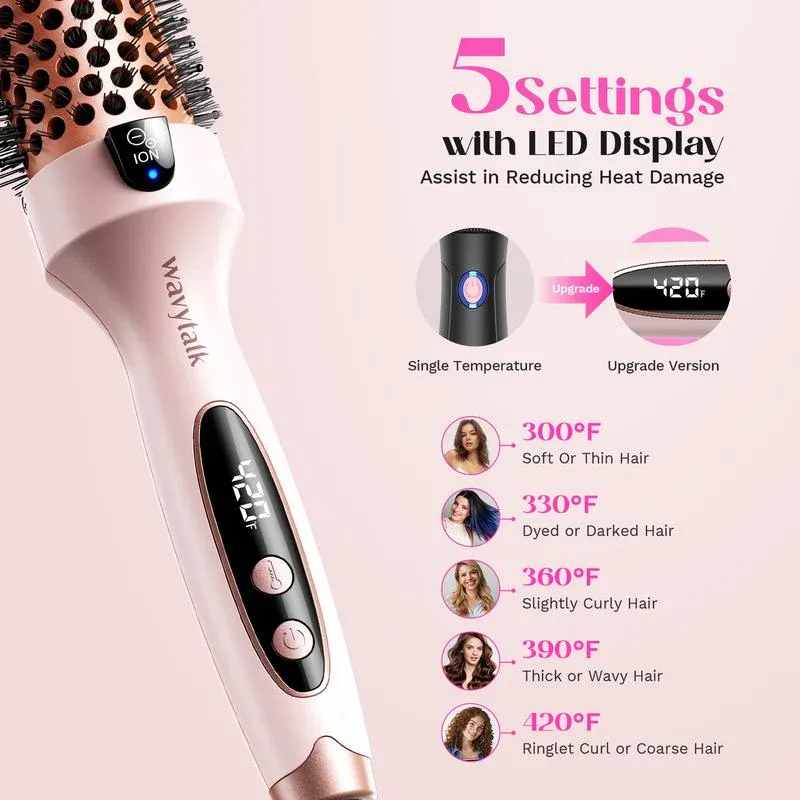 Wavytalk Blowout Boost Ionic Thermal Brush 1 1/2 Inch with LED Display, 300℉-420℉ for Different Hair Types, 120-240V Universal Voltage